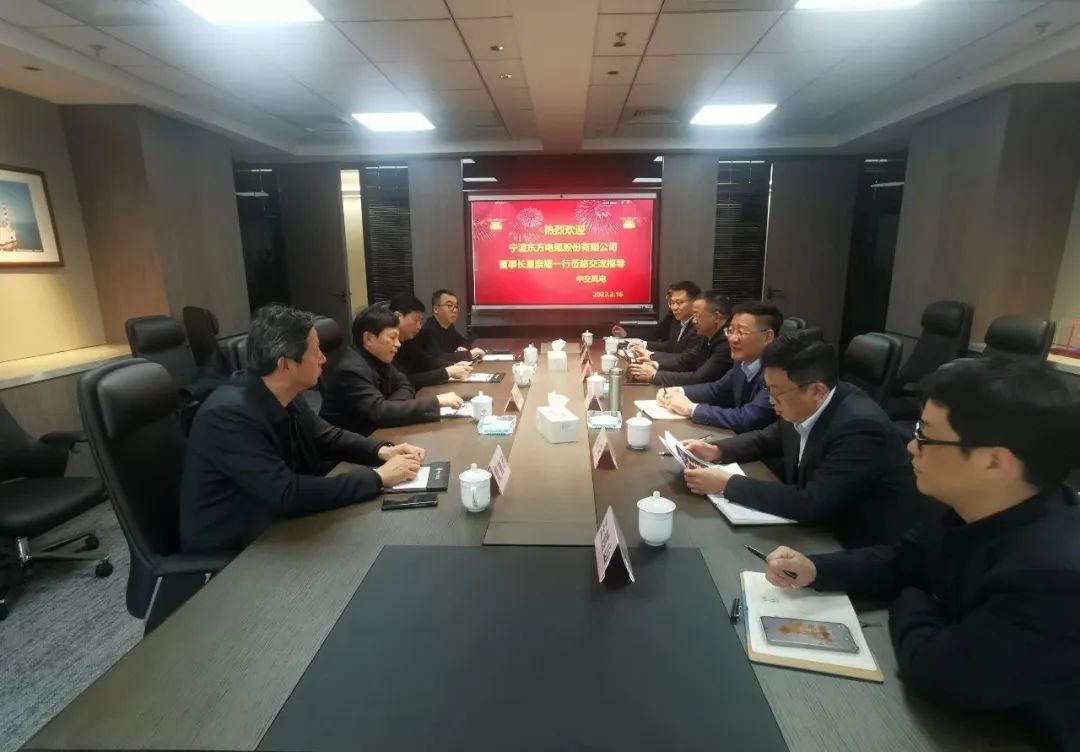 2月16日下午,304永利集团发展股份有限公司党委书记、董事长季振祥会见宁波东方电缆股份有限公司董事长夏崇耀一行,双方围绕深远海铺缆等海上风电产业合作进行交流。