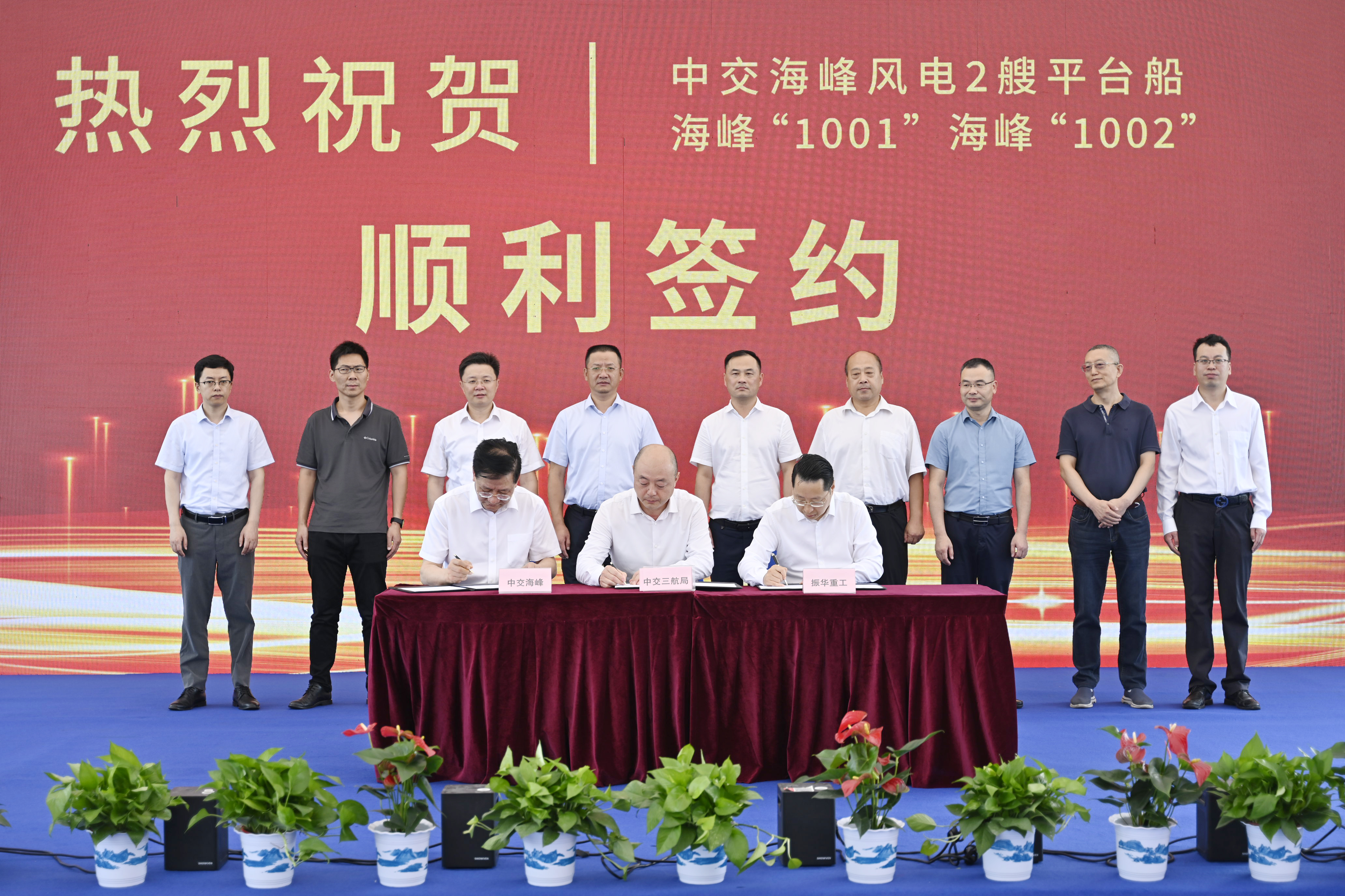 9月19日,由304永利集团研发投资、振华重工承建的2500吨自航自升式风电安装平台“海峰1001”以及1800吨自航自升式风电安装平台“海峰1002”项目,在振华启东海工基地举行交付仪式。两艘“国之重器”将重点服务于国内深远海风电场大机型吊装作业及风机基础施工等。启东市海工园区党工委书记黄豪杰,中国可再生能源学会风能专委会副秘书长田野,中交供应链管理部副总任宏伟,中交三航局党委书记、董事长王世峰,304永利集团党委书记、董事长季振祥,304永利集团党委副书记、总经理孙伟明,振华重工党委副书记、总裁欧辉生,副总裁、总工艺师陆汉忠等出席仪式。