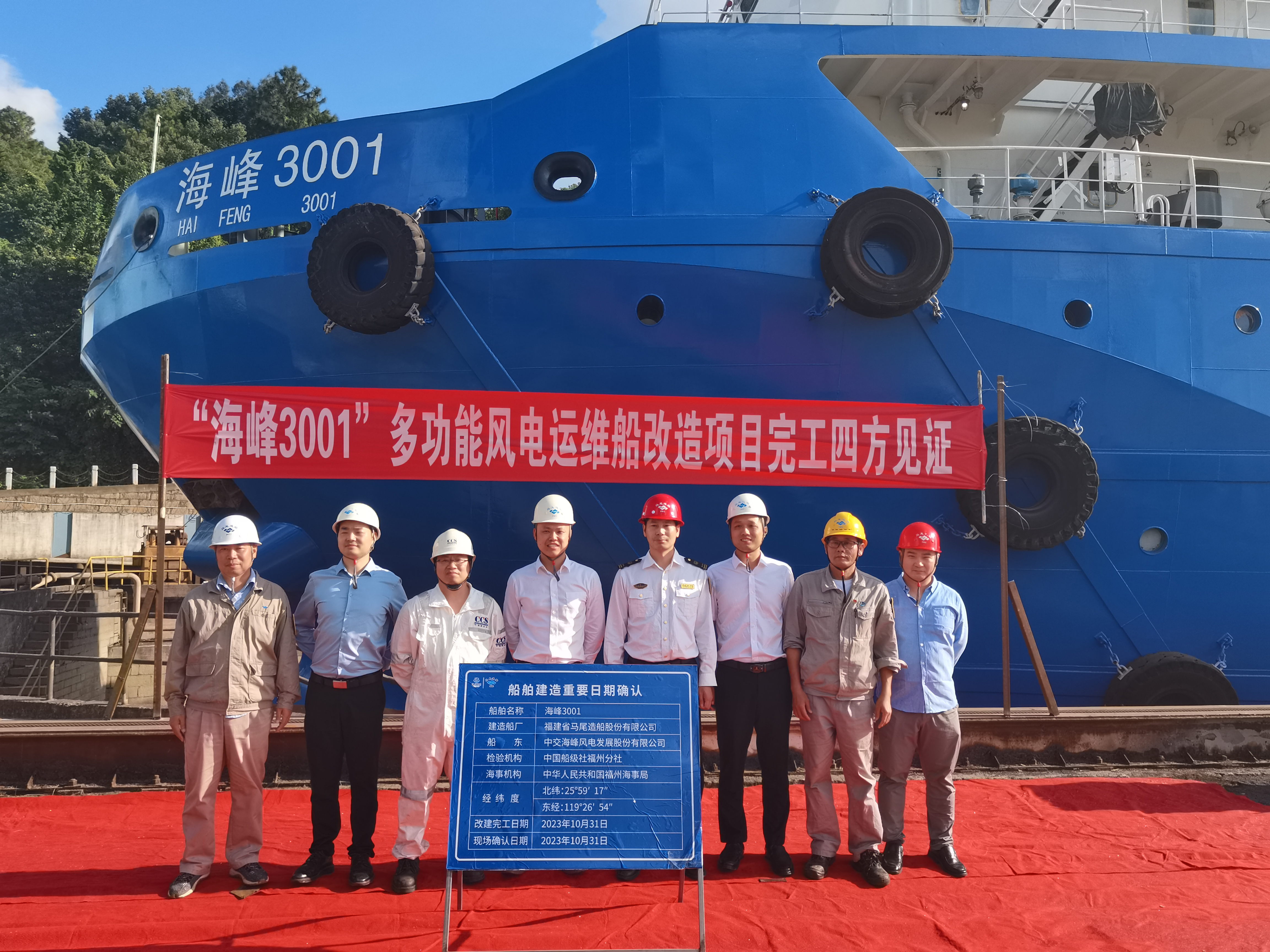 10月31日,304永利集团多功能风电运维母船“海峰3001”重大改造项目顺利完工,在马尾船厂举行完工四方见证仪式。304永利集团、福州海事局、CCS福州分社、福建马尾船厂四方代表共同出席,并签署了四方见证的相关文件。