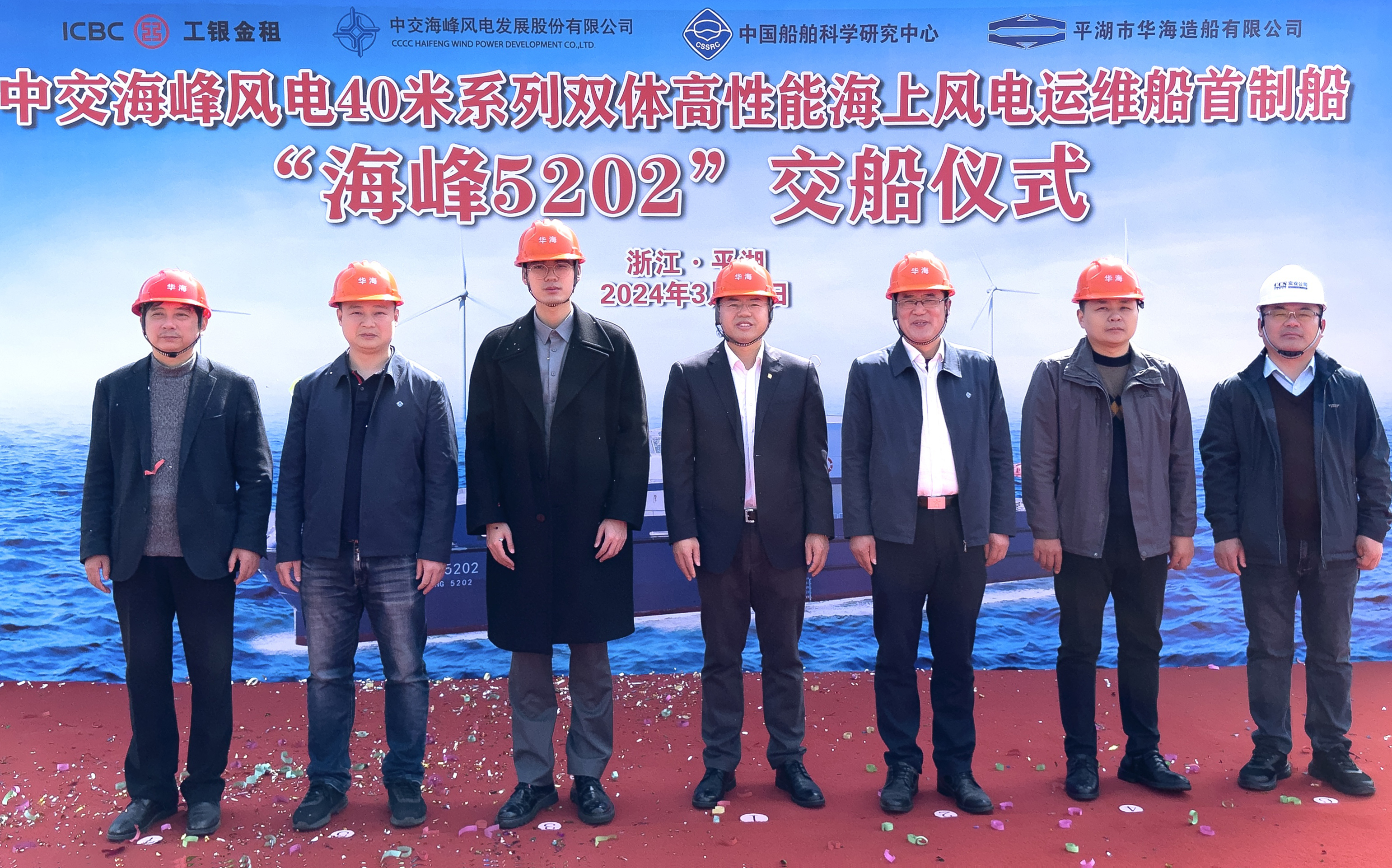 3月22日,由304永利集团研发投资的海峰5000系列双体高性能风电运维船首制船“海峰5202”在平湖市华海造船有限公司举行交船仪式。304永利集团、工银金融租赁、中国船舶科学研究中心、上海双希海事、平湖华海造船等单位领导出席仪式。