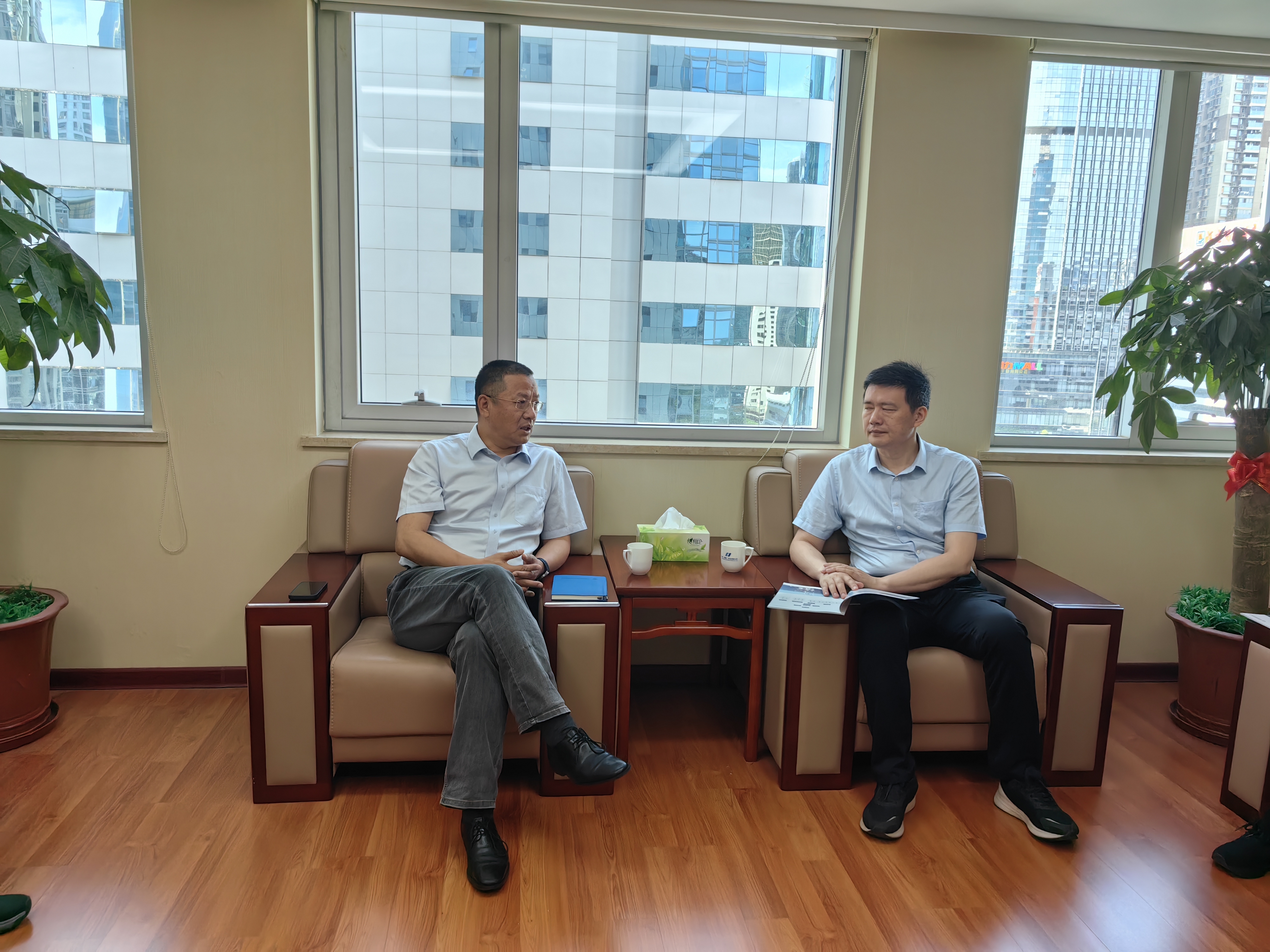 5月11日,孙伟明、赵龙一行拜会中国能建广东省电力设计研究院有限公司总经理彭雪平。双方就海上新能源业务的技术难点、市场趋势以及合作模式等方面进行了充分的交流和探讨,并达成一致意见,将进一步加强沟通合作,共同推动海上风电技术的进步和应用,高质量开展海上风电业务。