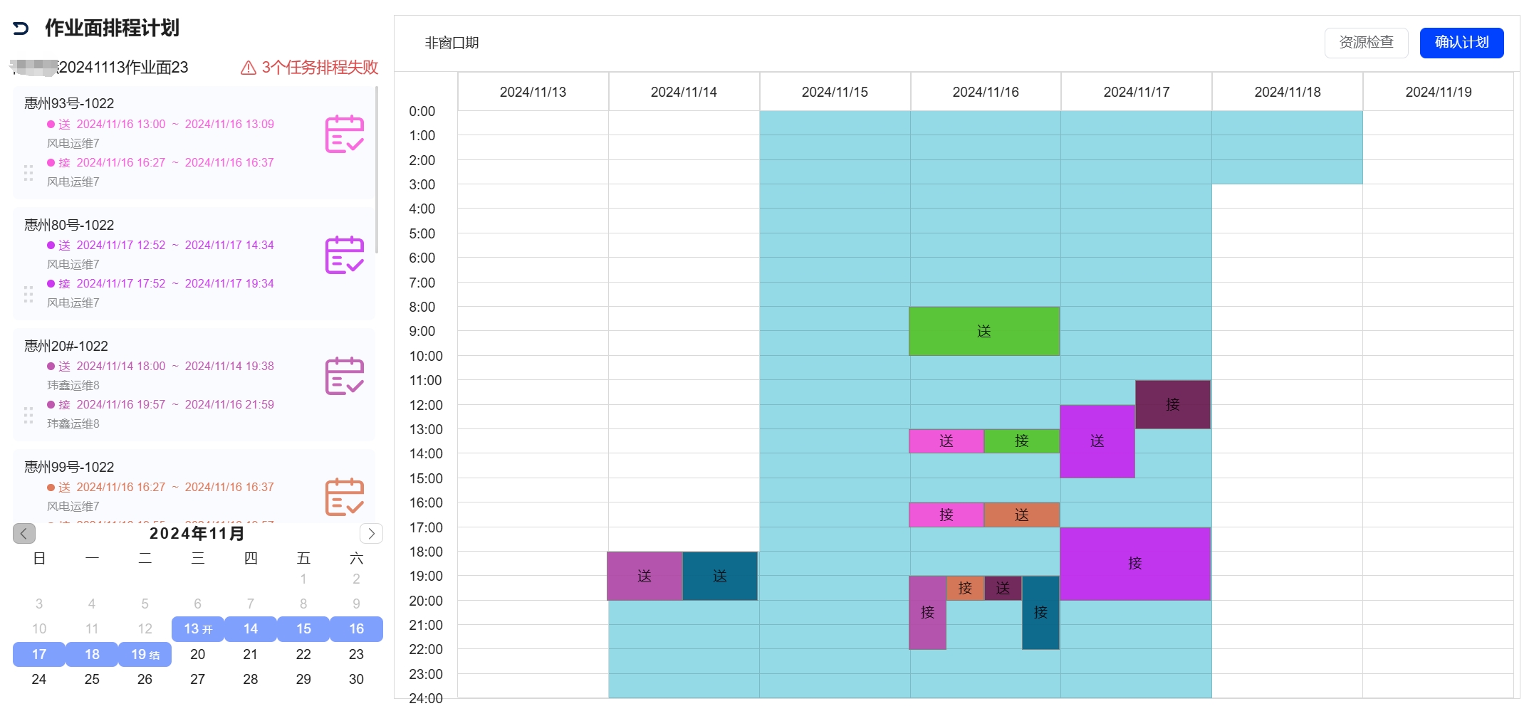 智能排程面向多任务、多班组、多船舶、多机位、有限气象窗口期的场景,综合考虑船舶配置、气候条件、作业任务要求等要素,运用智能排程算法进行合理规划,形成最优的船舶调度、人员调度方案,在有限运维资源限制下制定最优的出海运维策略。