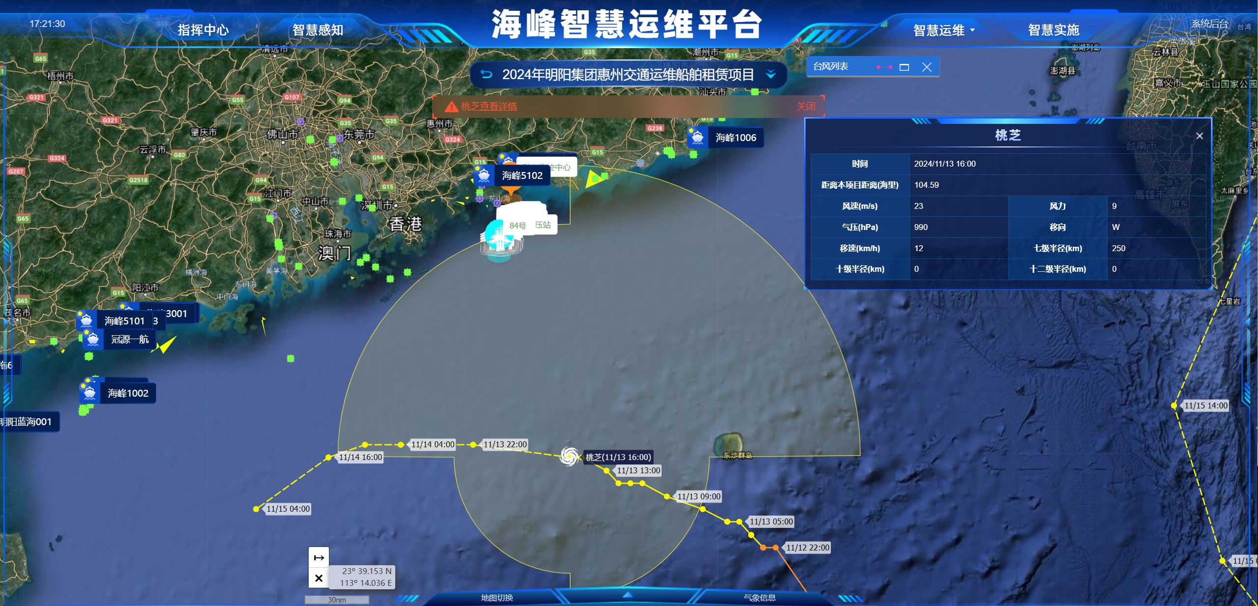 为响应”数智中交”的发展战略,304永利集团围绕海上风电运维领域的现状和需求,自主研发打造了“海峰智慧运维系统”。系统以船舶服务为载体,以专项服务为支撑,通过数字化赋能,将资产、业务、数据进行有效联通,实现了集感知、预警、诊断、决策、调度和实施功能为一体的智慧化运维。研发过程中形成核心知识产权8项,授权了发明专利2项。