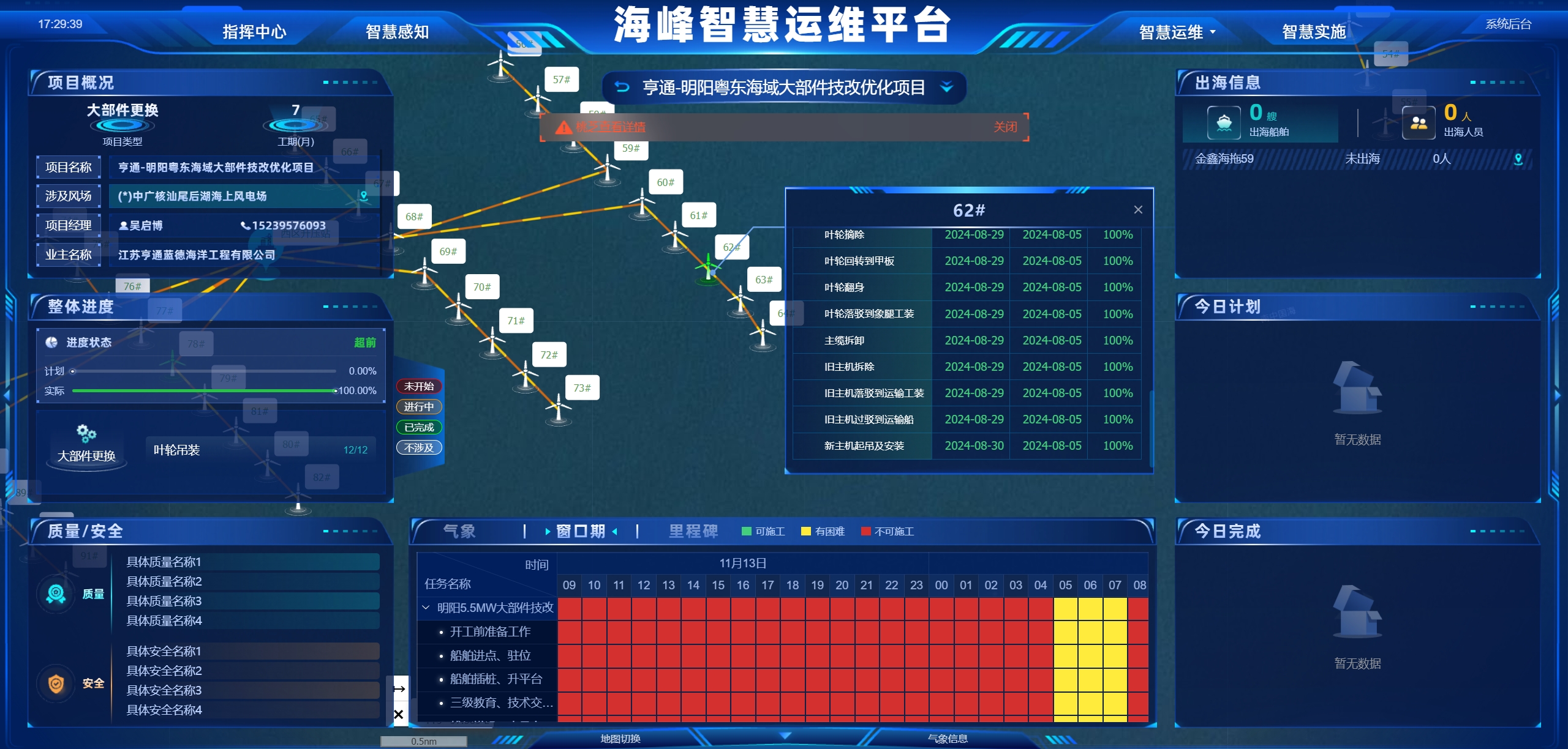 “新”潮澎湃,向“新”而兴,“新质生产力”已成为时代强音。扎实做到自主创新,突出抓好战新产业发展是建筑行业转型升级的必然要求,也是公司建设“三型”世界一流企业的必然选择。现以中交集团“2024年科技月”活动为契机,以“向新而行,智建未来”为主题,展示公司在海上风电运维领域的核心技术,本期为第二期——海上风电智慧运维系统。