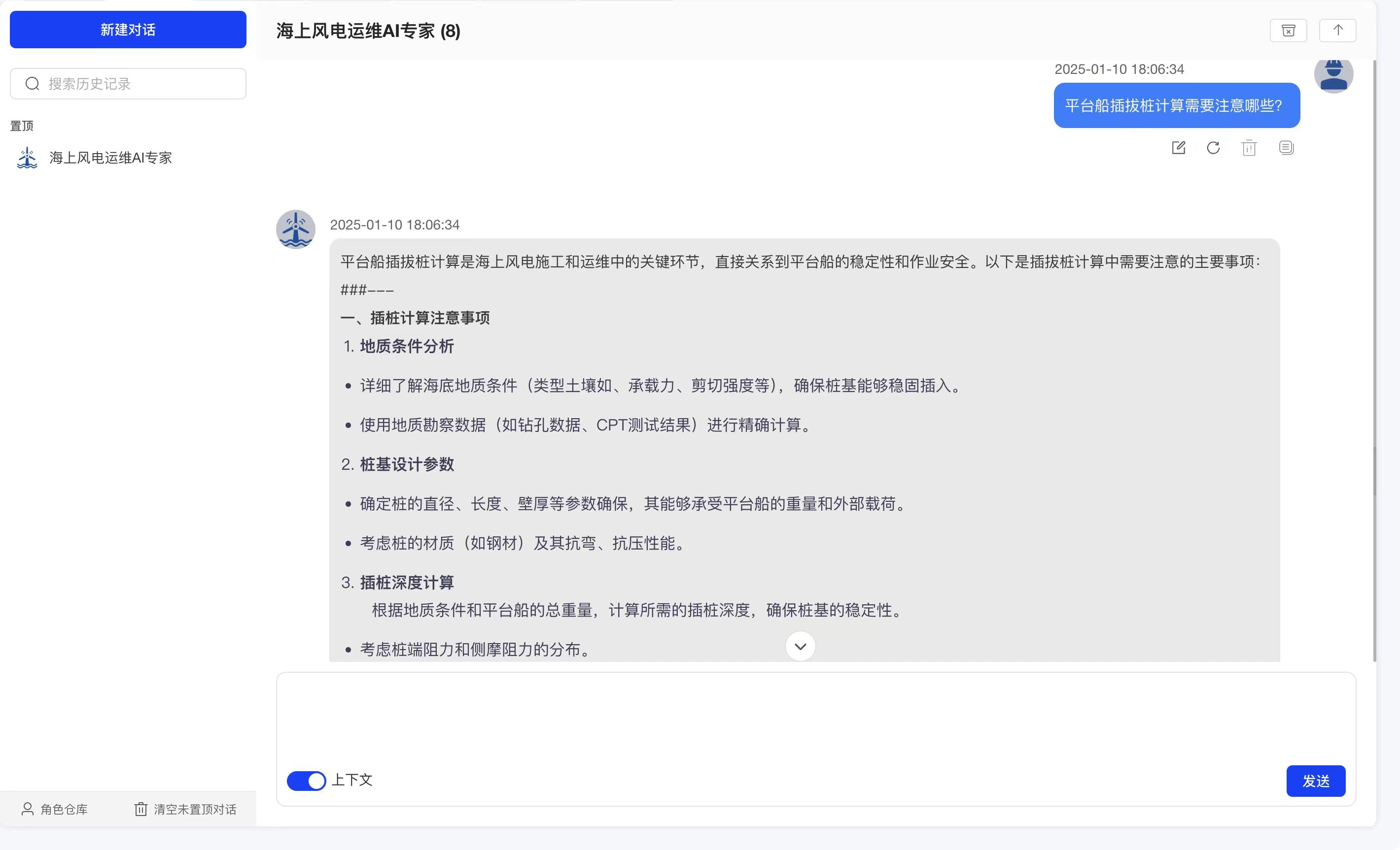 海上风电运维AI专家系统基于尖端的人工智能大模型,结合海上风电运维涉及的多专业、多学科的专业知识库,利用深度学习和自然语言处理技术,能够高效计算问题与知识库中的语义相似度,快速且精准地进行问题识别与分类,从而准确地理解业务人员的意图和需求,并提供与之高度匹配的答案,为业务人员提供全面、精准的智能支持,显著提升信息获取效率和决策支持能力。