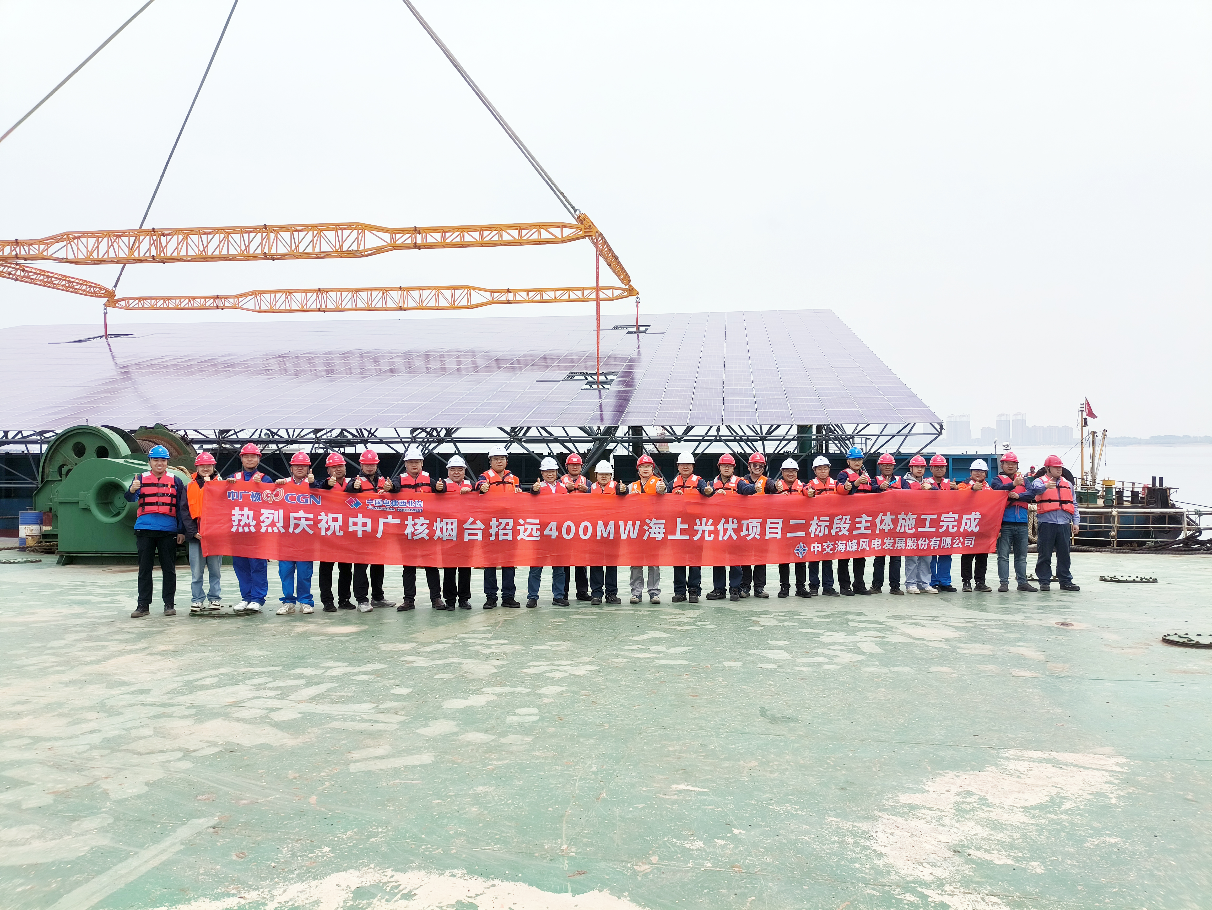 5月7日,由304永利集团承建的中广核烟台招远400MW海上光伏项目(HG30)二标段主体工程全面完工。