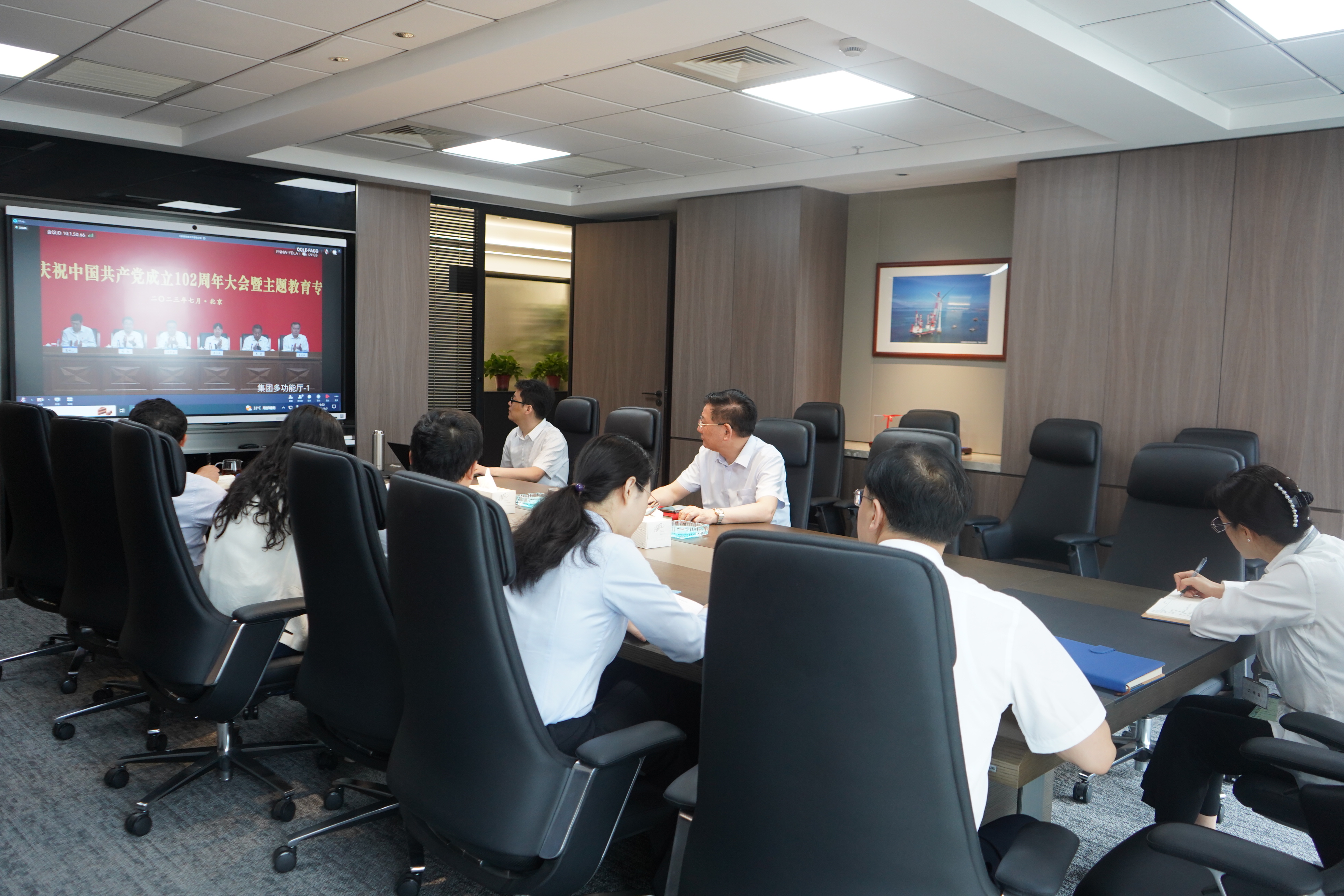 公司在京领导出席会议。总部各部门负责人及以上领导干部、各在京单位党委主要负责人、“一先两优”获奖代表在主会场参会,公司所属单位领导班子、相关部门负责人等在视频分会场参会。