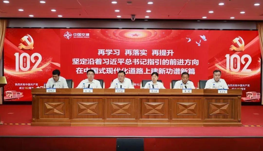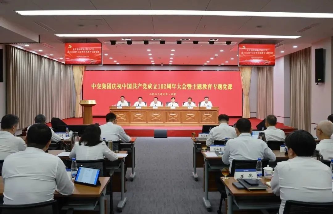7月7日,中交集团庆祝中国共产党成立102周年大会暨主题教育专题党课在中交大厦召开。中交集团党委书记、董事长,主题教育领导小组组长王彤宙出席会议并讲授专题党课,国资委党委主题教育第九巡回指导组副组长李小云出席会议,中交集团党委副书记刘翔主持会议并作总结讲话。
