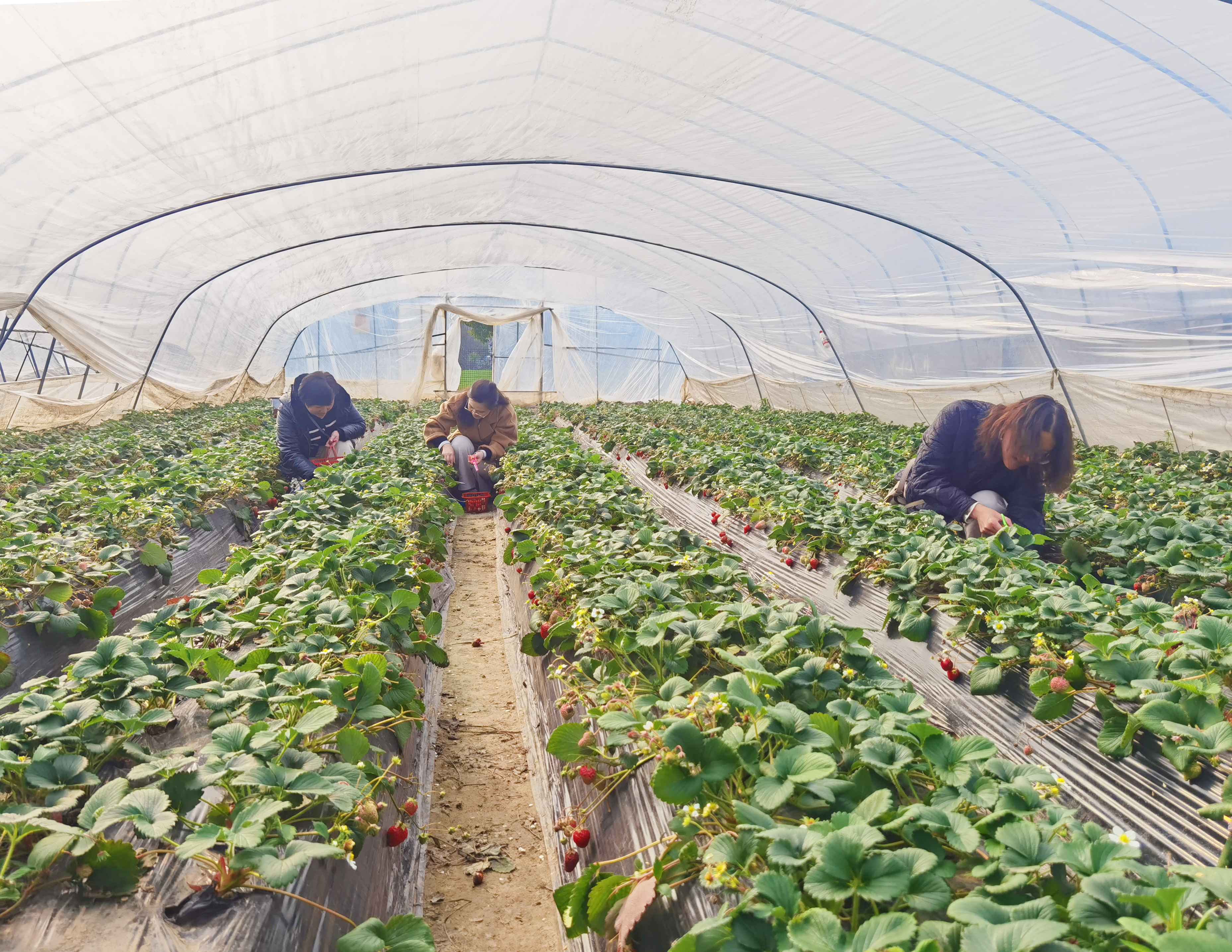 活动中,女职工们一边摘草莓一边交流,在亲近大自然的同时,体会劳动和收获的快乐。
